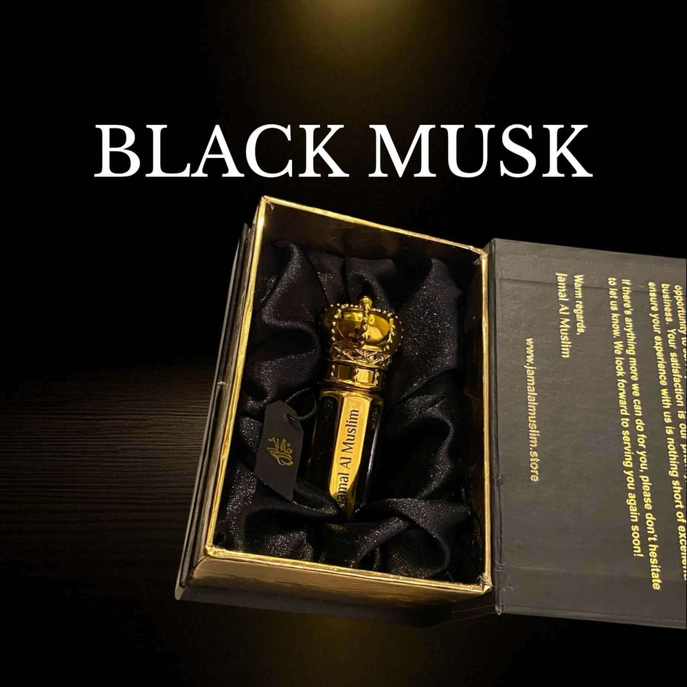 Black Musk – A luxurious unisex fragrance with amber at the top, patchouli woody heart, and a herbal musk base. Long-lasting and elegant, it evokes ancient Arabian traditions, perfect for religious and private occasions.